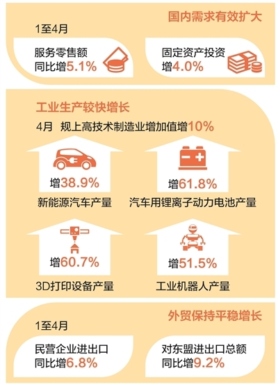 4月份,擴大內(nèi)需戰(zhàn)略持續(xù)推進,國內(nèi)需求有效擴大。